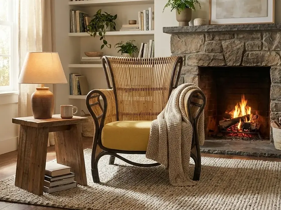 Tables and stools featuring cane tops combine elegance with everyday practicality. Coffee tables with rattan inlays instantly make a living room look more inviting, while side tables are perfect for holding books, plants, or your evening cup of tea. Their neutral tones allow them to blend seamlessly into both traditional and modern interiors.