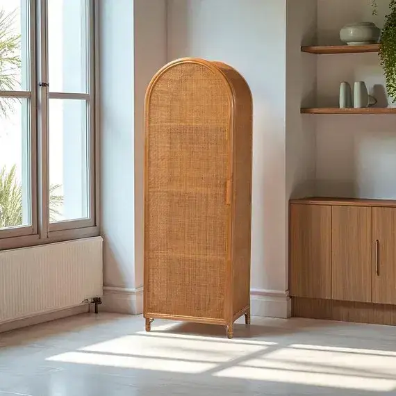 Rooted in traditional cane craftsmanship and designed for modern bohemian interiors, this arched rattan cane cabinet blends storage with soft architectural character. The curved silhouette introduces a sense of flow and warmth, making it as much a design element as it is a functional cabinet.