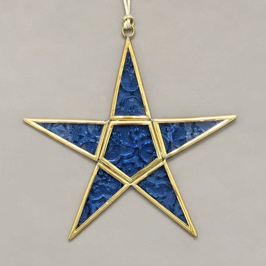 Blue Glass Hanging Stars with Golden Accent Pack of 20