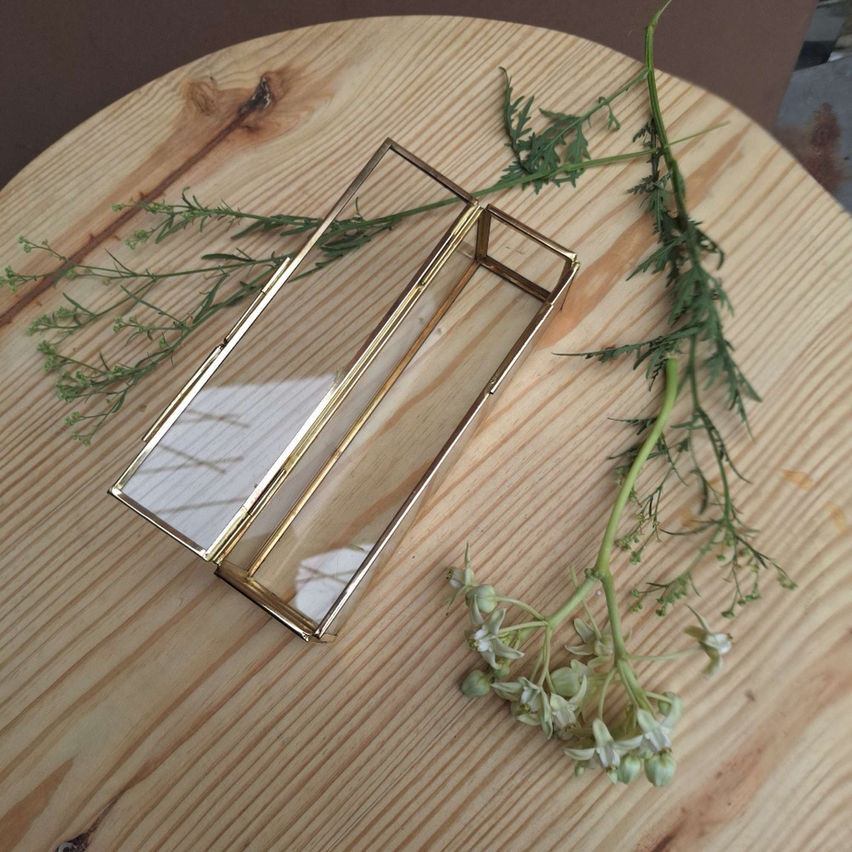 Clear Glass and Brass Scroll Display Box - Luxurious Wedding Invitation