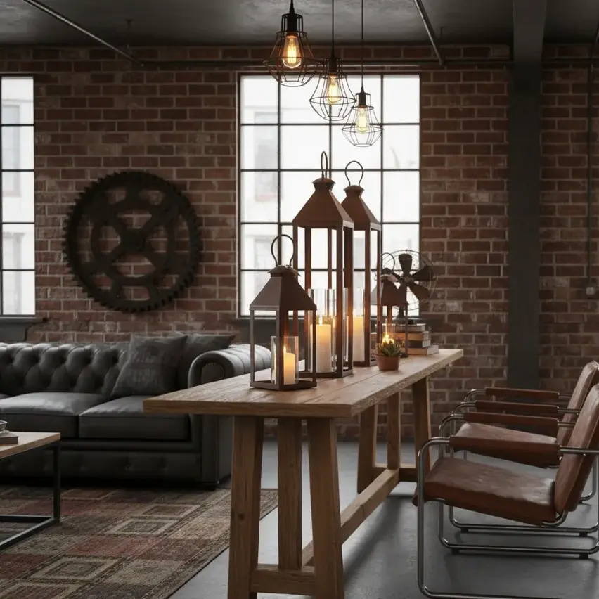 Coffee Brown Rustic Metal Outdoor Candle Lanterns Set of 3