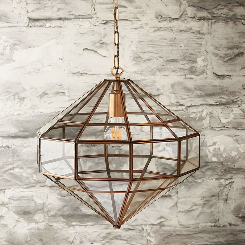 This Decorative Transparent Hanging Pendant Lantern adds a touch of decorative style to any room with its eye-catching lattice pattern and super transparent glass. Its brass edges and E27 holder make it a standout piece that will be sure to draw attention in any space. Perfect for adding a touch of light and ambiance to a room, this lantern is sure to be a conversation starter. With its classic style, it is the perfect addition to any home or office décor. It is sure to bring a warm and inviting atmosphere to any space.