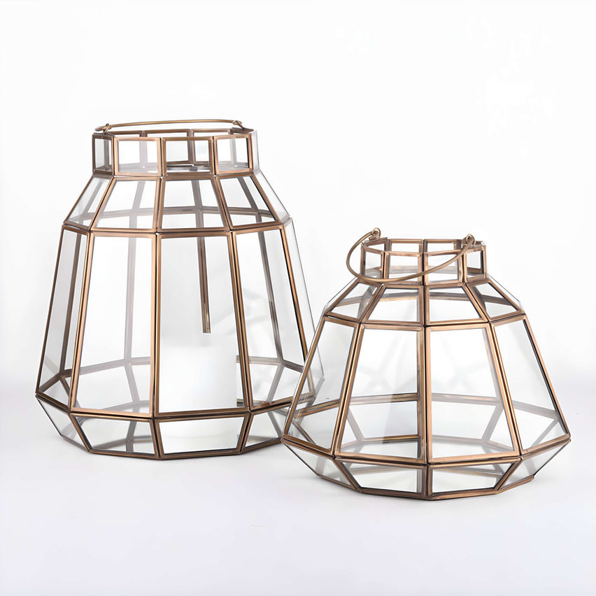 Geometric Transparent Golden Pitcher Decor Lanterns Set of 2