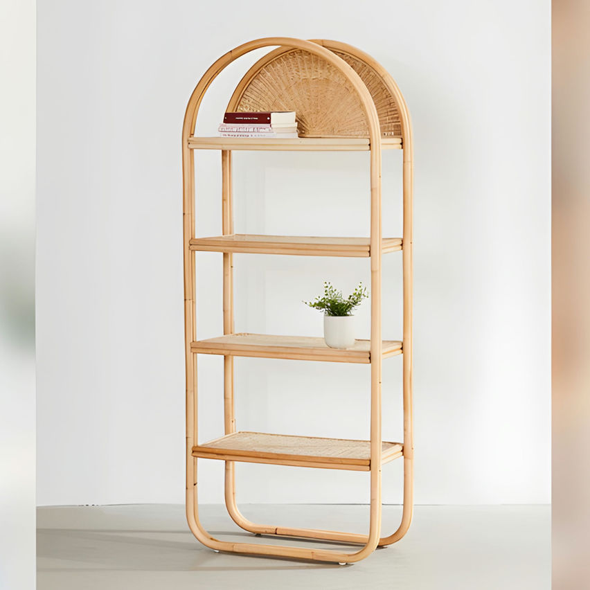 Handcrafted Brilliance: Natural Cane 4 Grid Arched Console Rack