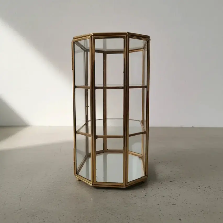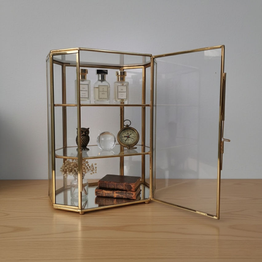 Made using ultra-clear 4mm glass and framed in pure brass with a bright polished finish, this display case balances elegance with durability. The vertical profile allows multiple items to be showcased clearly, making it ideal for curated collections that deserve structure and protection.