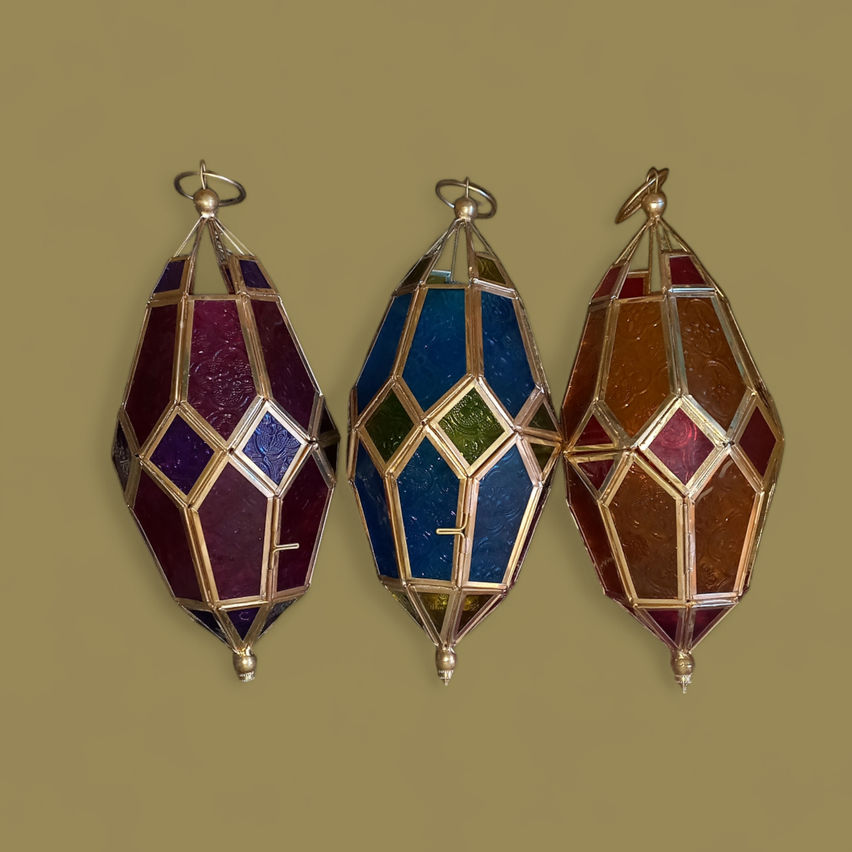 These beautiful Multicolor Glass and Brass Edge Hanging Moroccan Lamp bring an exotic sense of style to any home. Made from colorful glass, they feature intricate carved designs and intricate patterns that will add a touch of global charm to any room. Perfect for both indoor and outdoor use, they'll add a warm and inviting atmosphere wherever they're hung. The soft glow they cast will create a cozy and inviting atmosphere in any space. Whether you hang them in your living room, bedroom, patio, or garden, these Moroccan hanging glass lanterns will bring a unique flair and a hint of romance to any home.