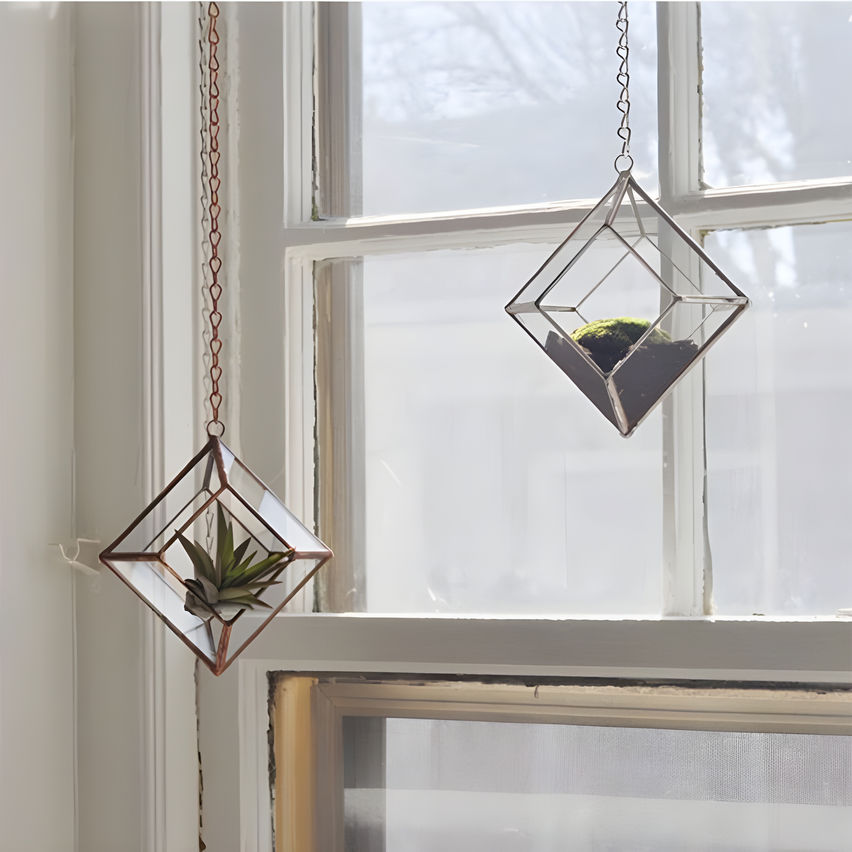 Designed to elevate your space, this terrarium comes complete with a sturdy hook and chain, allowing you to effortlessly suspend it from any suitable location. Whether you're cultivating succulents, air plants, or your own unique arrangement, our Hanging Terrarium provides the perfect environment for your green companions to thrive while becoming a stunning focal point in your home or office.