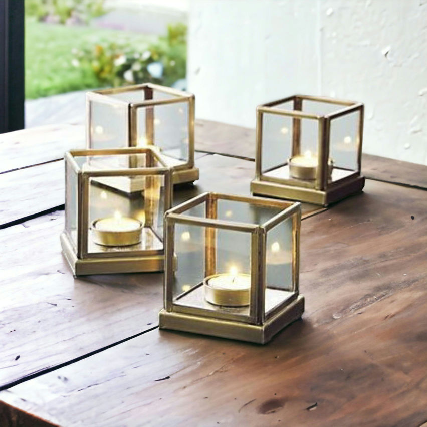 Transparent Square Shape Votive Tealight Holders Set of 4