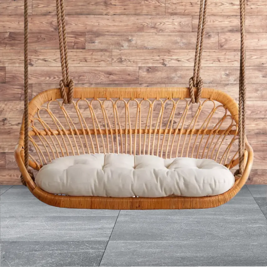 Woven Rattan 2 Seater Hanging Sofa Chair | Cane Jhoola Chair