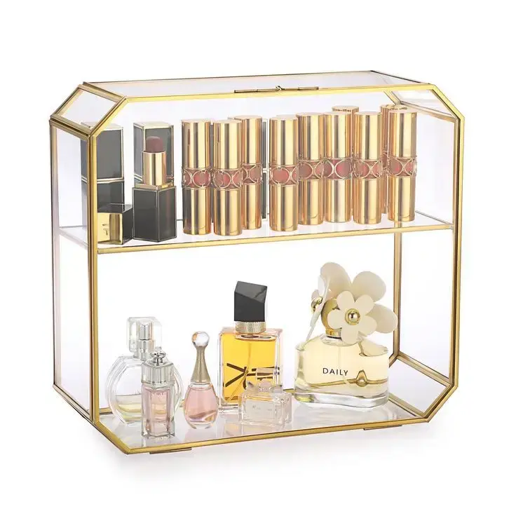 Double Tier Tabletop Clear Glass Makeup Organizer Rack